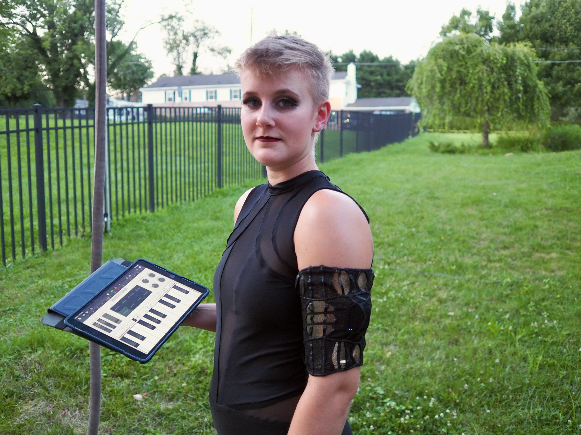 Motion Midi used as a wearable musical interface to transform movement into sound. Part of a collaborative project to explore how wearables can be implemented as a tool for performance research.